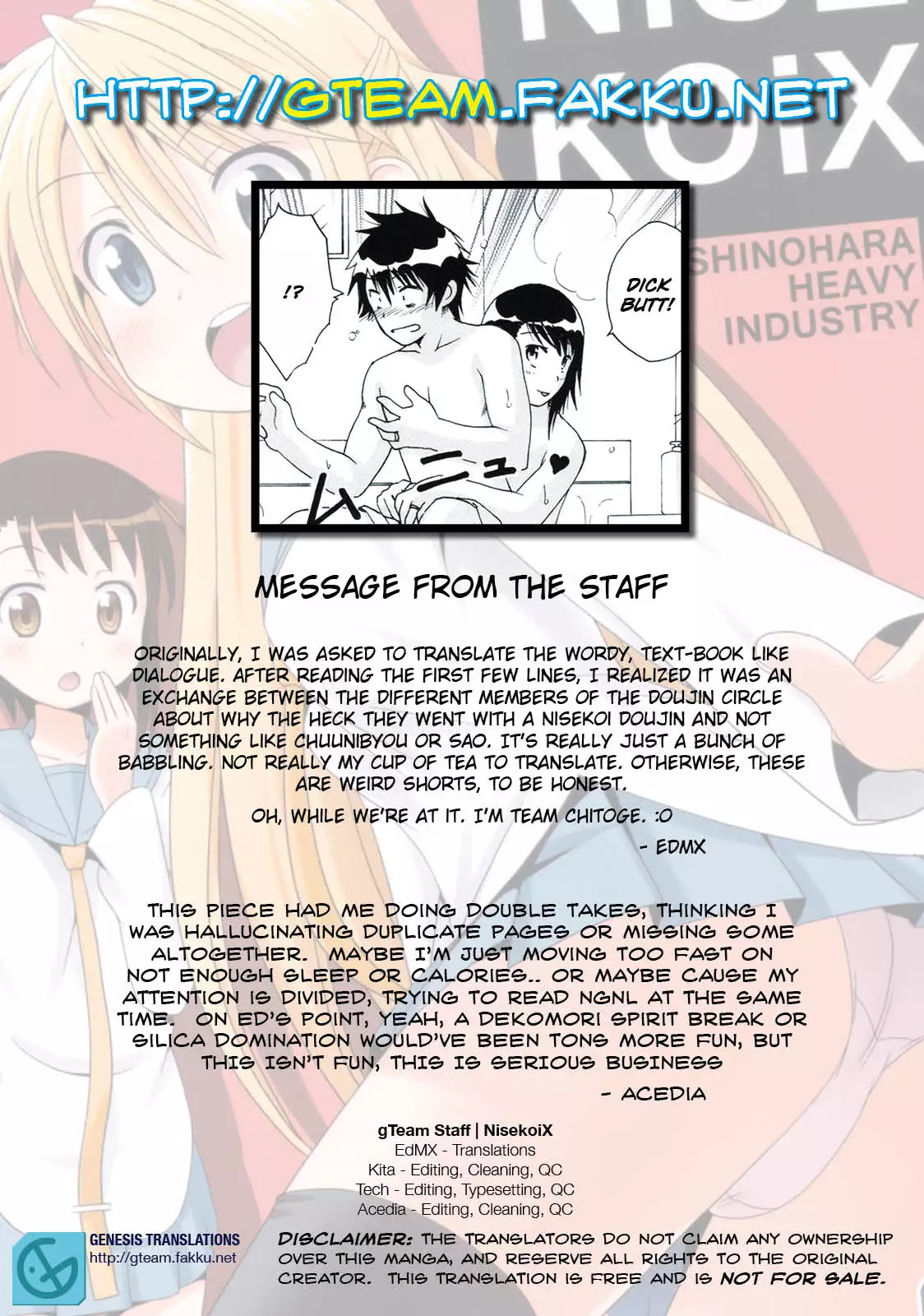 (C83) [Shinohara Heavy Industry (Various)] NISEKOiX (Nisekoi) [English] [gTeam] (C83) [篠原重工営業部 (よろず)] NISEKOiX (ニセコイ) [英訳]