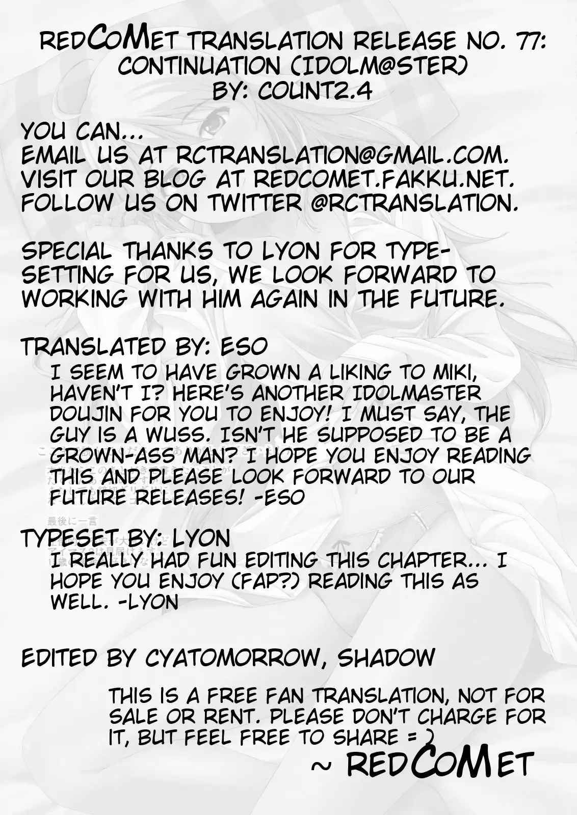 (C79) [Count2.4 (Nishi)] Continuation (THE iDOLM@STER) [English] [redCoMet] (C79) [Count2.4 (弐肆)] CONTINUATION (アイドルマスター) [英訳]