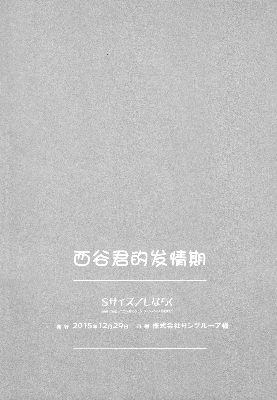 Nishinoya-kun no Hatsujouki | 西谷君的发情期 (C89) [Sサイズ (しなちく)] 西谷くんの発情期 (ハイキュー!!) [中国翻訳]