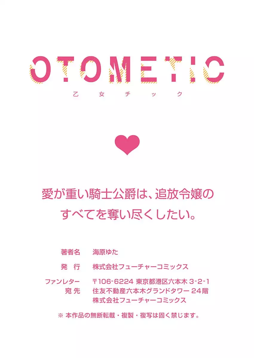 Ai ga Omoi Kishi Koushaku wa, Tsuihou Reijou no Subete o Ubaitsukushitai. | 骑士公爵爱意深重,想要索取放逐千金的一切。 1-17 [海原ゆた] 愛が重い騎士公爵は、追放令嬢のすべてを奪い尽くしたい。 1-17 [中国翻訳]
