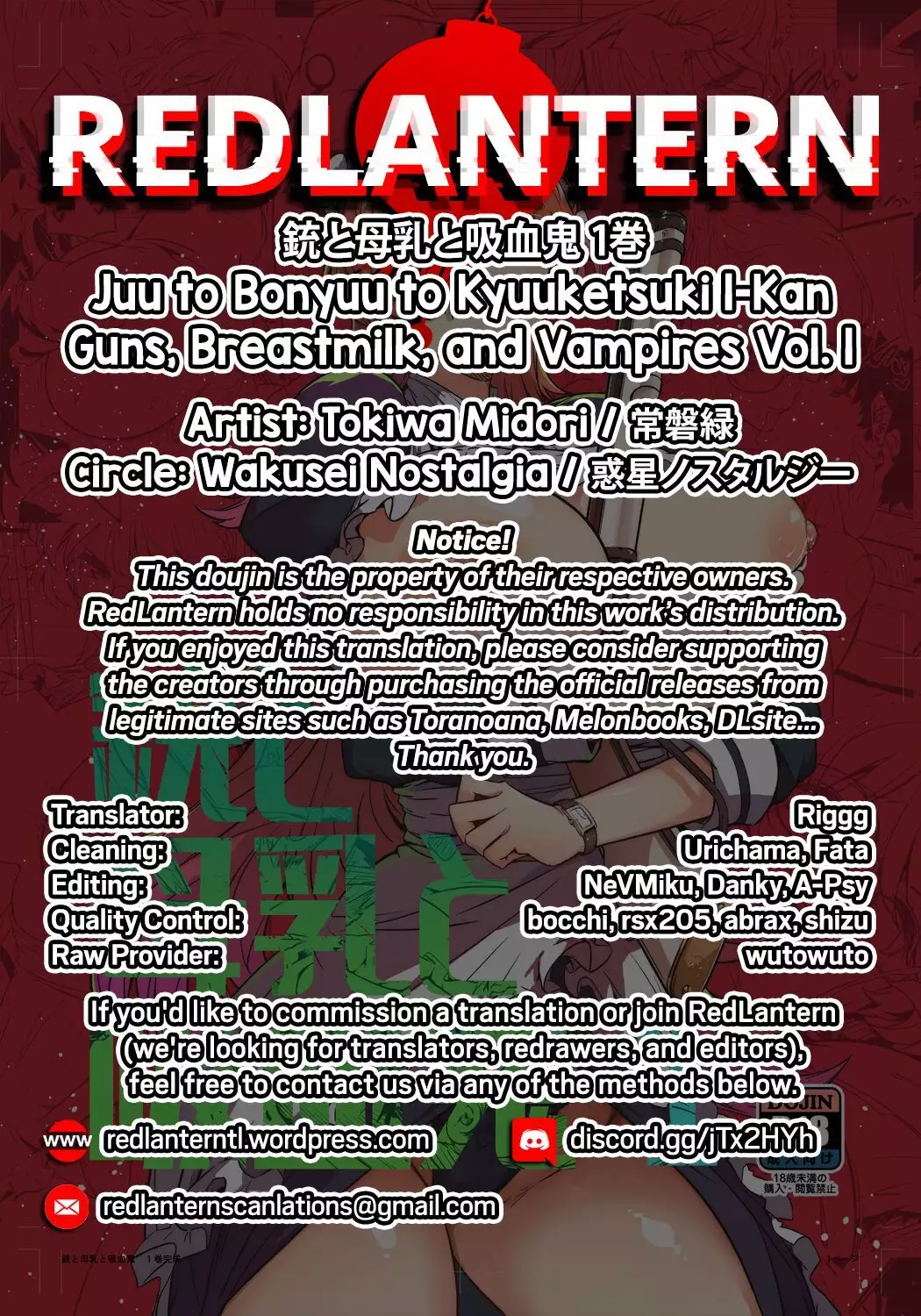 Juu to Bonyuu to Kyuuketsuki 1-Kan | Guns, Breastmilk, and Vampires Vol.1 [惑星ノスタルジー (常磐緑)] 銃と母乳と吸血鬼 1巻 [英訳] [DL版]