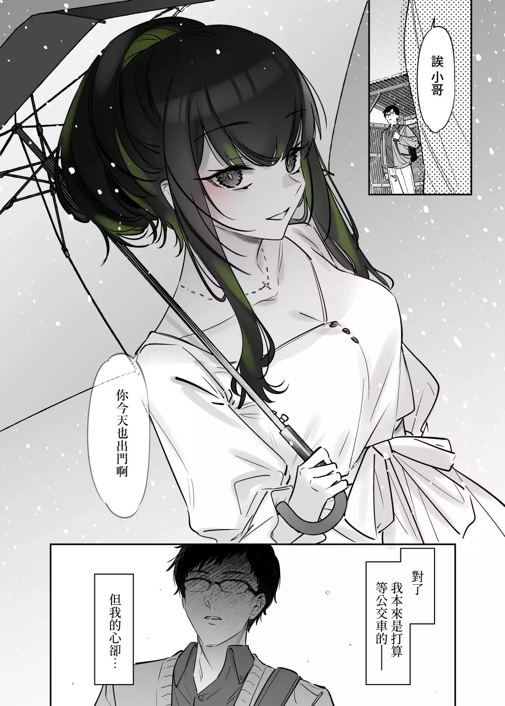 Yuki no Hi ni Deatta, Kawatta Yuki Zuri no Onnanoko | 下雪那天路遇的奇怪女孩 [薺屋本舗 (7zu7)] 雪の日に出会った、変わった行きずりの女の子 [中国翻訳] [DL版]
