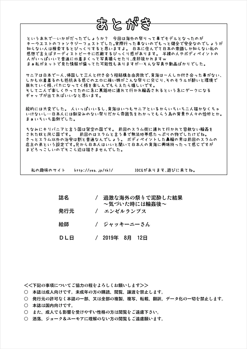 I Got Drunk at a Sleazy Festival and Woke Up Post Gang Bang [ジャッキーハウス (ジャッキーニーさん)] 過激な海外の祭りで泥醉した結果 ~気づいた時には輪姦後~