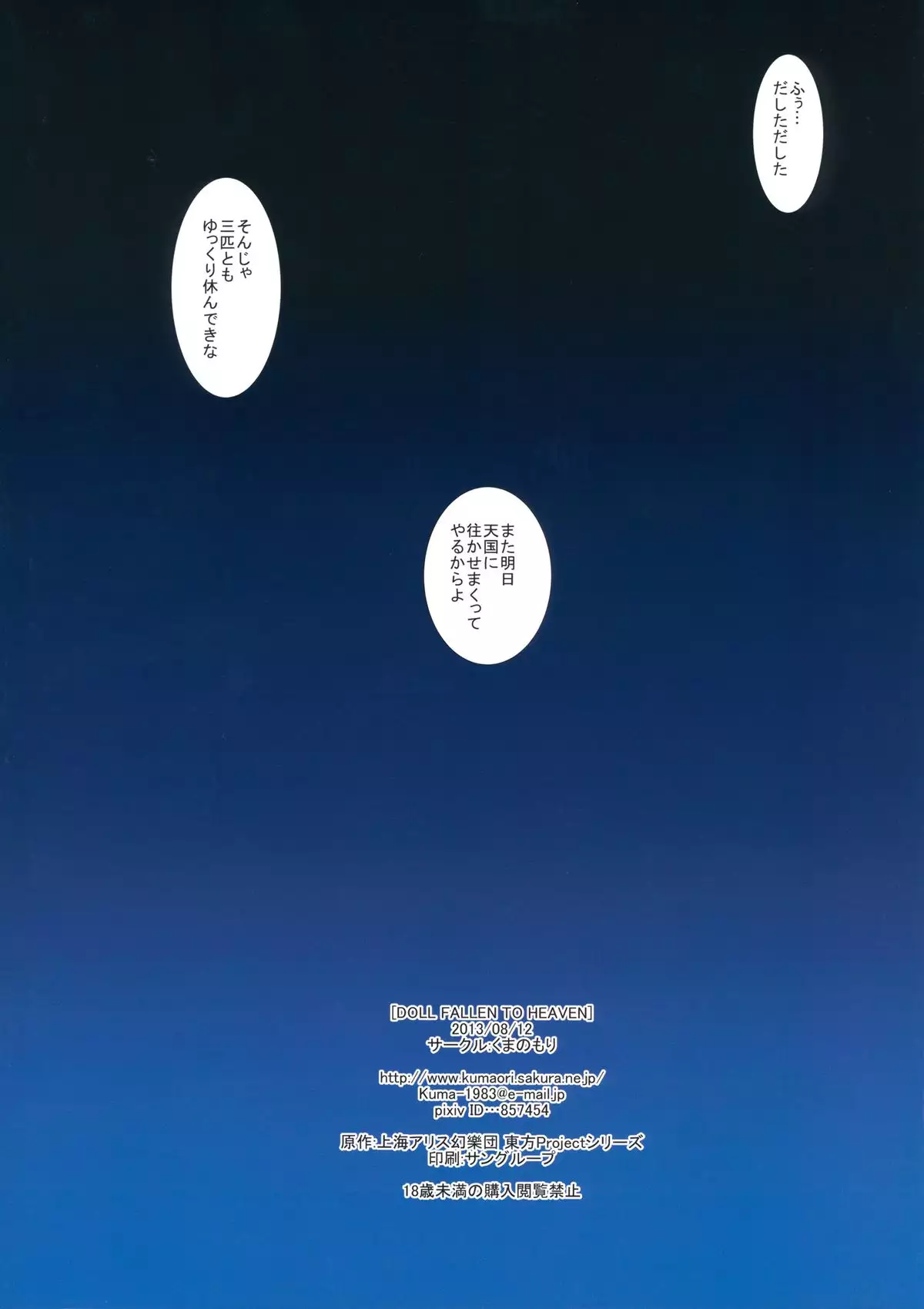 (C84) [Kuma no Mori (Kuma Tarou)] DOLL FALLEN TO HEAVEN (Touhou Project) (C84) [くまのもり (隈太郎)] DOLL FALLEN TO HEAVEN (東方Project)