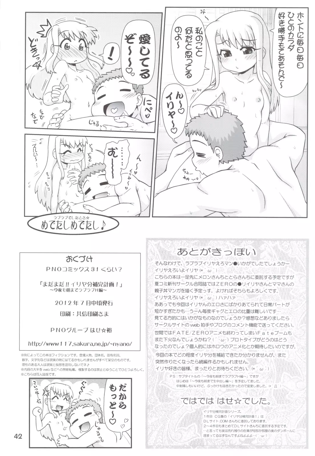 [PNO Group (Hase Hiroshi)] Madamada!! Illya Bun Hokan Keikaku! ~Konya mo Asa made Love Love H Hen~ (Fate/stay night) [PNOグループ (はせ☆裕)] まだまだ!!イリヤ分補完計画! ~今夜も朝までラブラブH編~ (Fate/stay night)