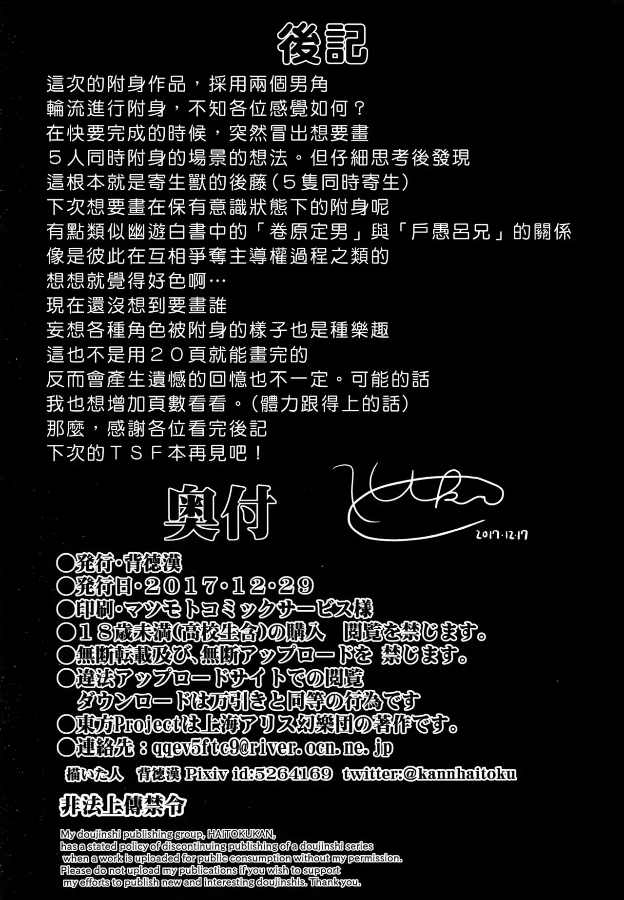 (C93) [Haitokukan (Haitokukan)] Touhou TSF 3 Sakuya ni Hyoui (Touhou Project) [Chinese] [Den個人漢化] (C93) [背徳漢 (背徳漢)] 東方TSF3 咲夜に憑依 (東方Project) [中国翻訳]