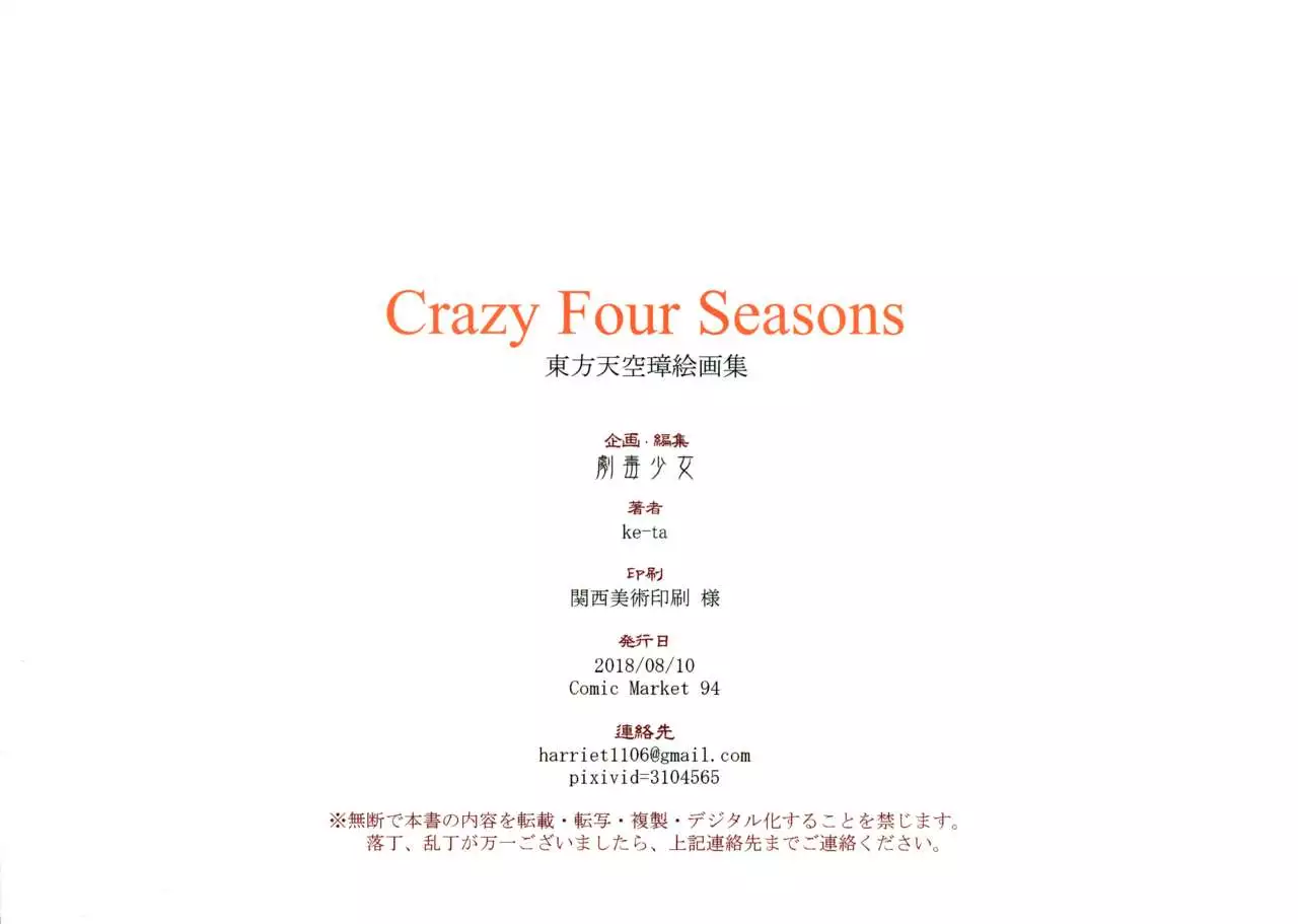 (C94) [Gekidoku Shoujo (ke-ta)] Crazy Four Seasons (Touhou Project) (C94) [劇毒少女 (ke-ta)] Crazy Four Seasons (東方Project)