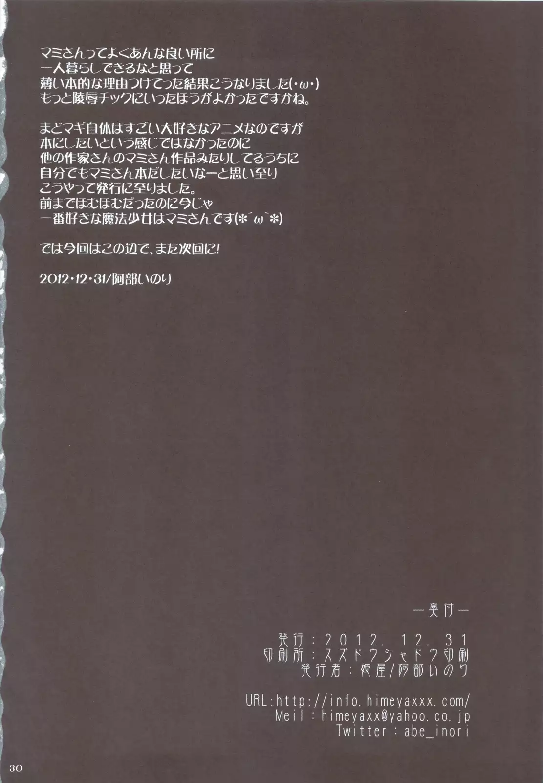 (C83) [Himeya (Abe Inori)] Tomoe Mami wa Majo dearu (Puella Magi Madoka Magica) (C83) [姫屋 (阿部いのり)] 巴マミは魔女である (魔法少女まどか☆マギカ)