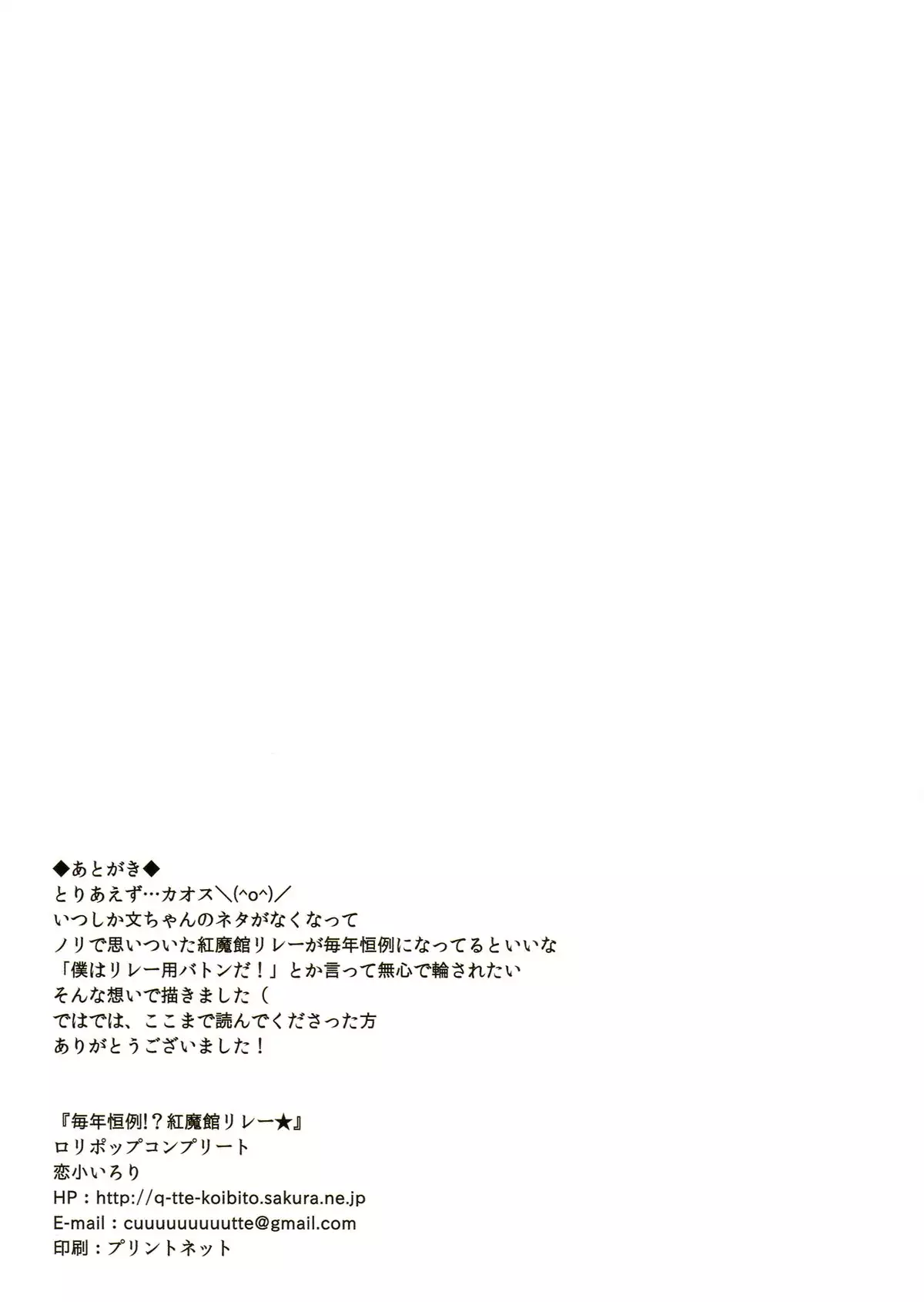[Lolipop Complete (Koiko Irori)] Maitoshi Kourei!? Koumakan Relay★ (Touhou Project) [Digital] [ロリポップコンプリート(恋小いろり)] 毎年恒例!?紅魔館リレー★ (東方Project) [DL版]