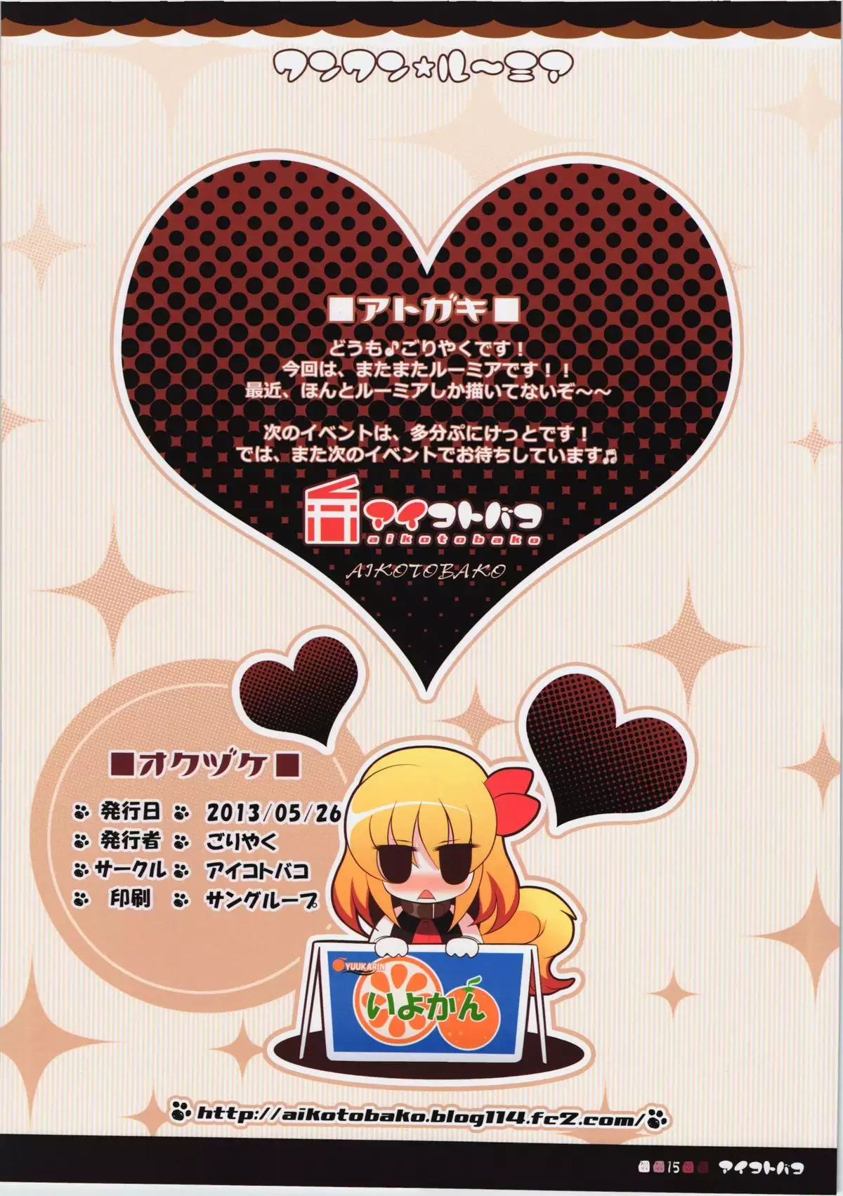 (Shuuki Reitaisai 4) [Aikotobako (Goriyaku)] Bakumori Rumia (Touhou Project)