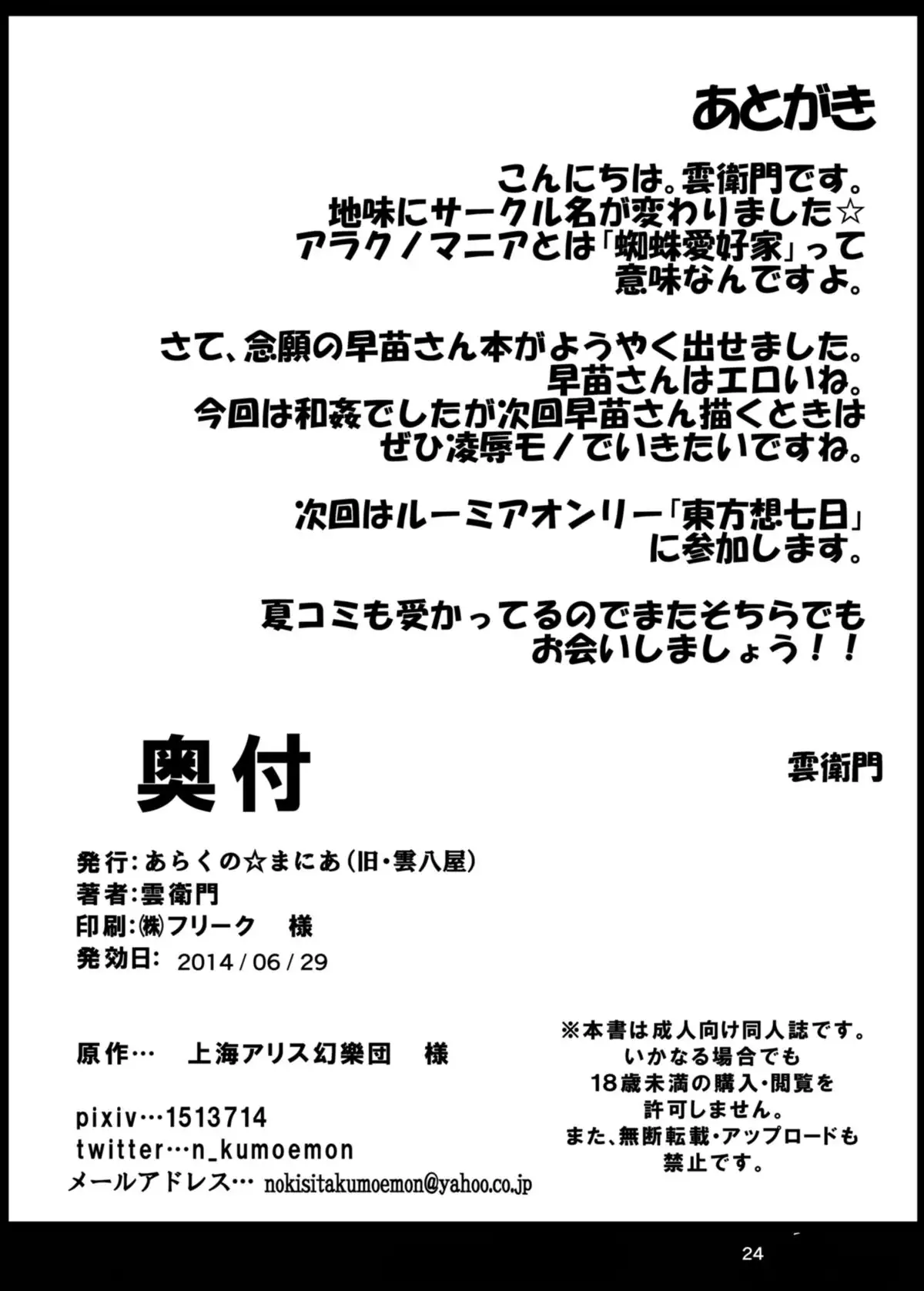 [Arachno☆Mania (Kumoemon)] Koi Sana (Touhou Project) [Digital] [あらくの☆まにあ (雲衛門)] 恋さな (東方Project) [DL版]