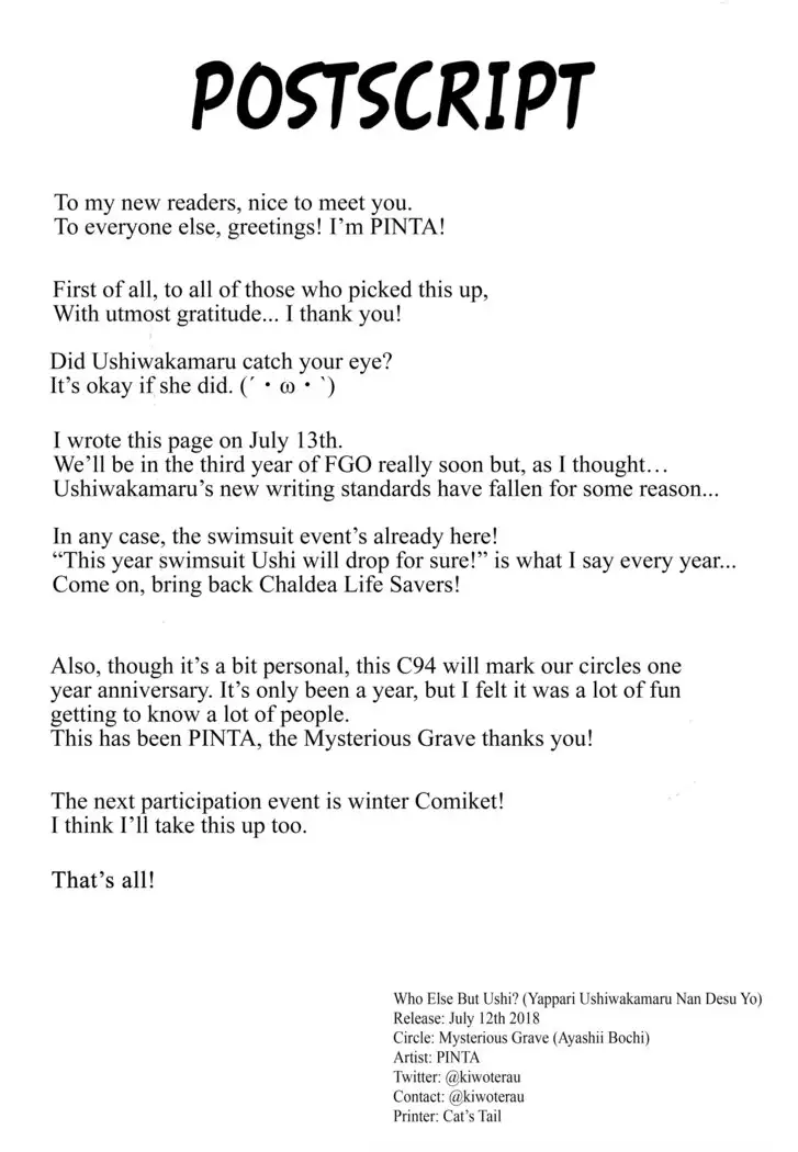 (C94) [Ayashii Bochi (PINTA)] Yappari Ushiwaka nandesu yo ne | Who Else But Ushi? (Fate/Grand Order) [English] [Saint Quartz Scans]