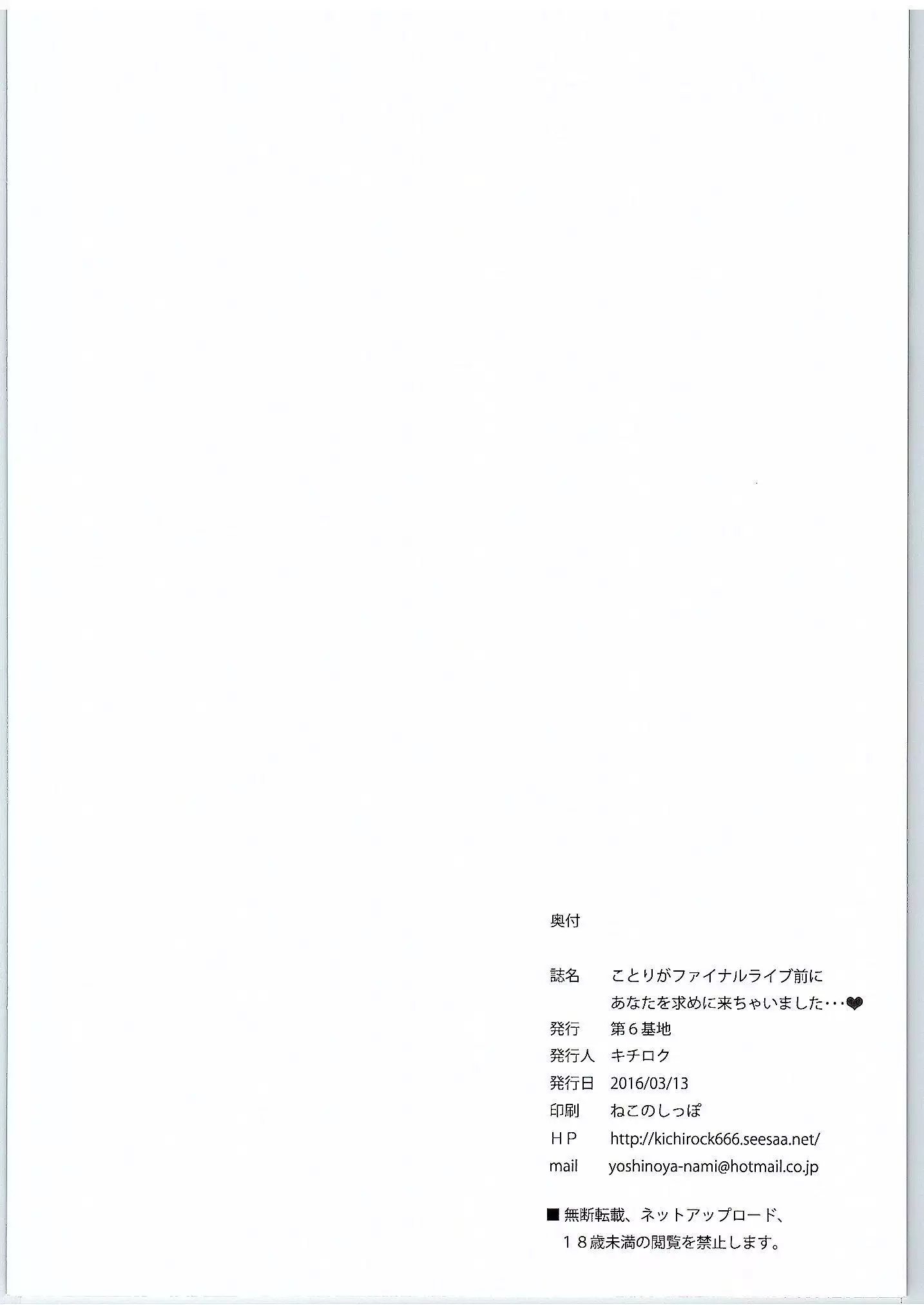 (Bokura no Love Live! 11) [Dai 6 Kichi (Kichirock)] Kotori ga Final Live Mae ni Anata o Motome ni Kichaimashita…♥ (Love Live!)
