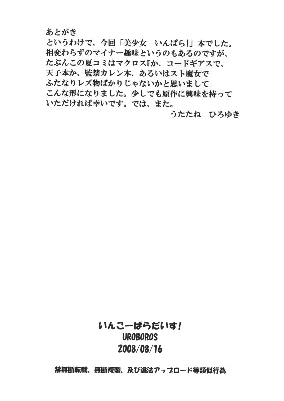 (C74) [UROBOROS (Utatane Hiroyuki)] Inko Paradise! (Bishoujo Inpara!) (C74) [UROBOROS (うたたねひろゆき)] いんこーぱらだいす! (美少女いんぱら!)